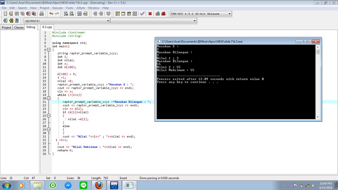 cout << "Nilai Maksimum : "<<nilai << endl;